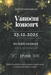 Přijďte si společně zazpívat ve středu 23. prosince v 17:00 na farní zahradu vánoční písně a naladit se na blížící se svátky.