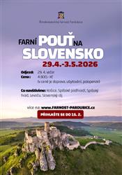 Farní pouť na Slovensko se bude konat v termínu 29. 4. 2026 - 3. 5. 2026. Cestovat se bude autobusem.