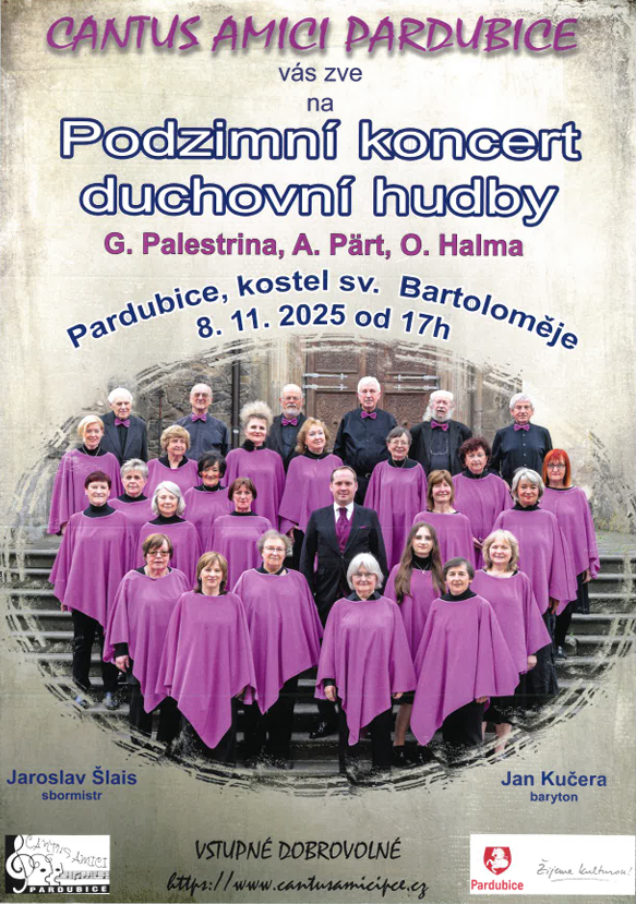 V sobotu 8. listopadu v 17:00 jste zváni na již tradiční podzimní koncert sboru Cantus amici do kostela sv. Bartoloměje.