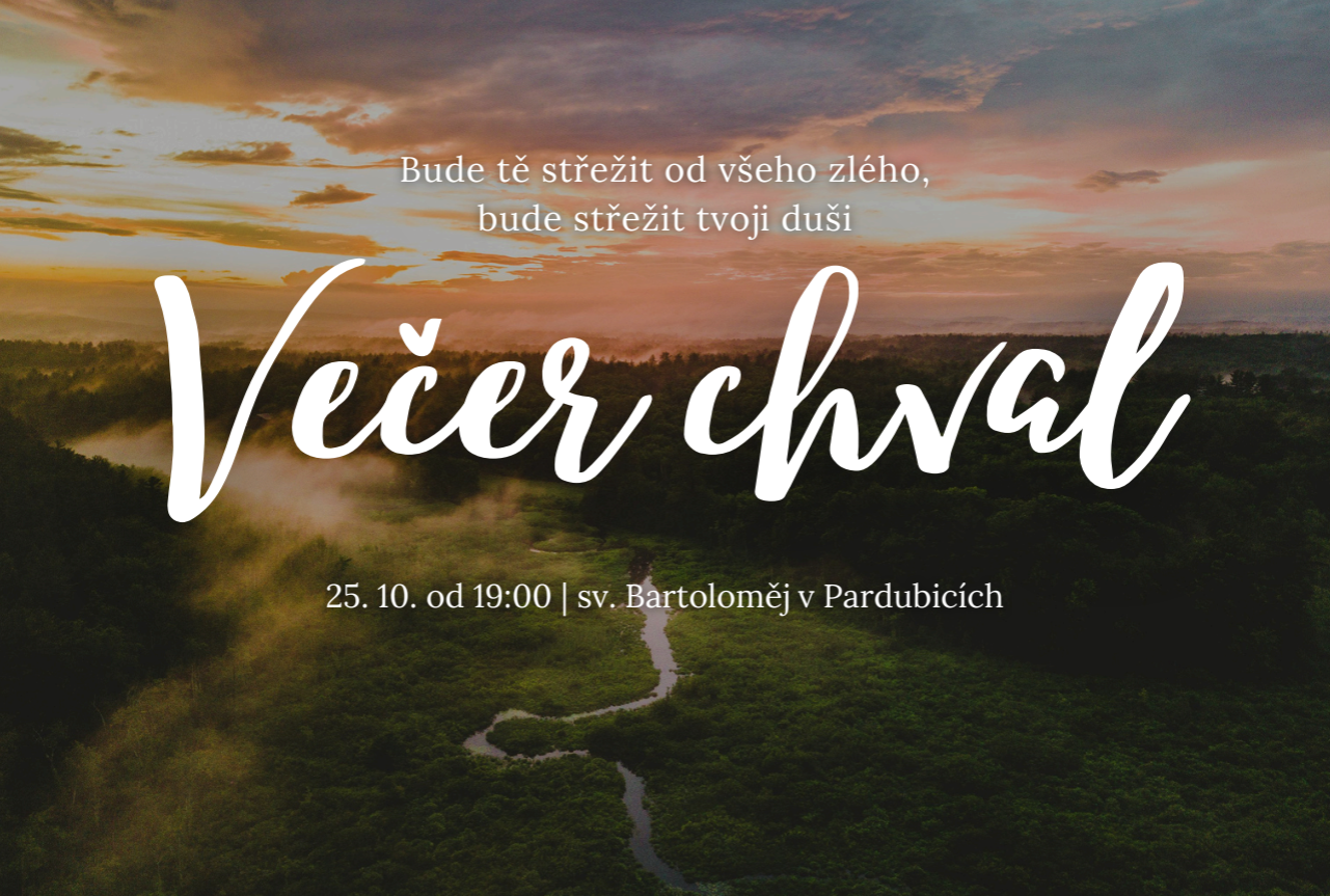 Zveme Vás chválit našeho Pána v sobotu 25. října v 19:00 do kostela sv. Bartoloměje. Večer povede Petr Kučera.