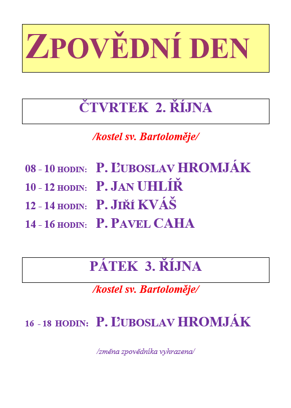 - Zpovědní den - říjen