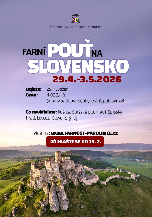 Farní pouť na Slovensko se bude konat v termínu 29. 4. 2026 - 3. 5. 2026.