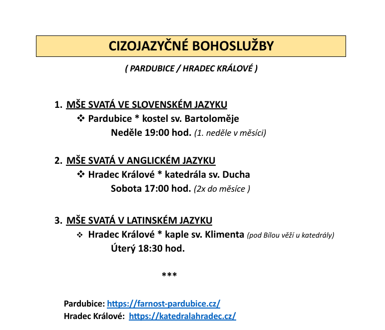 - Nabídka cizojazyčných bohoslužeb v Pardubicích a Hradci Králové